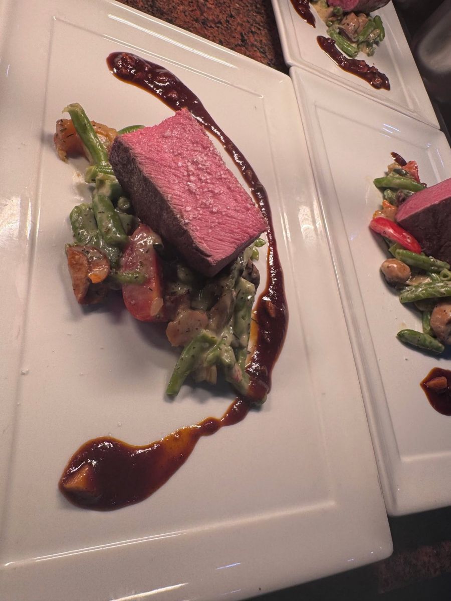 Gestern gab’s bei uns Sonnenborsteler Hirschrücken auf Bohnencassoulet – begleitet von hausgemachten Kroketten mit Muskat und Meersalz, verfeinert mit Fleur de Sel und einer kräftigen Pilzjus.
