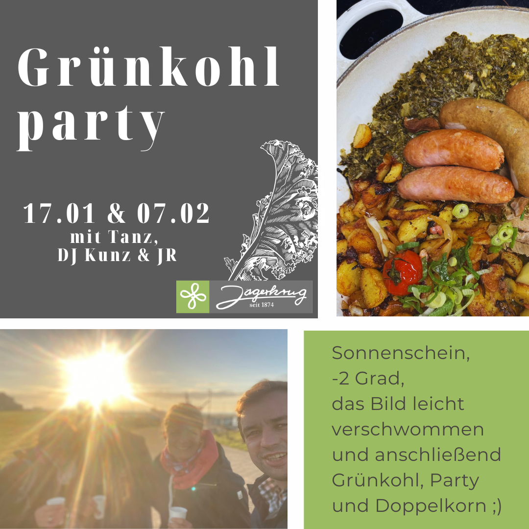 Wenn draußen der Frost klirrt und die Tage kürzer werden, wird es bei uns im Jägerkrug richtig gemütlich: Es ist Grünkohlzeit! Freut euch auf einen geselligen Abend mit traditionellem Grünkohlbuffet, herzhaften Beilagen wie Bregenwurst, Kassler und knusprigem Bauchspeck – natürlich alles frisch und regional zubereitet.